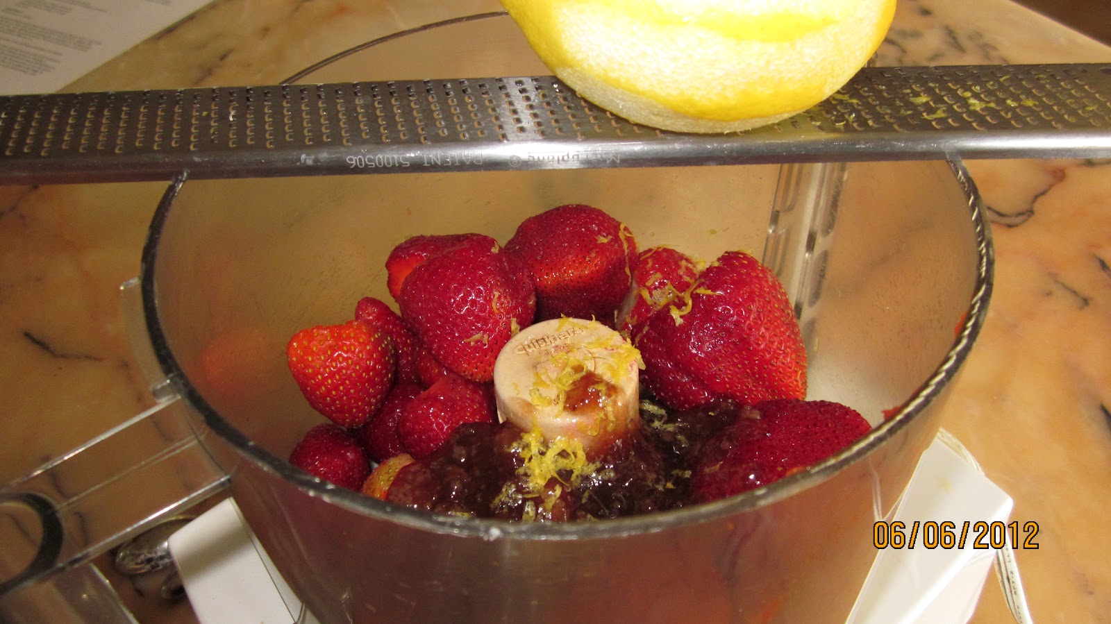 Rinse and hull the berries and put them in the food processor or blender with ½ cup of the preserves and the salt. Finely grate zest from half of the lemon into the processor bowl. Puree until smooth. Add the lemon juice, vinegar, and water and pulse to mix. Taste and add the remaining jam as necessary for sweetness and adjust the lemon juice, vinegar, and salt if necessary. The puree should taste a bit sweeter than you think it should and have a little zip to it.